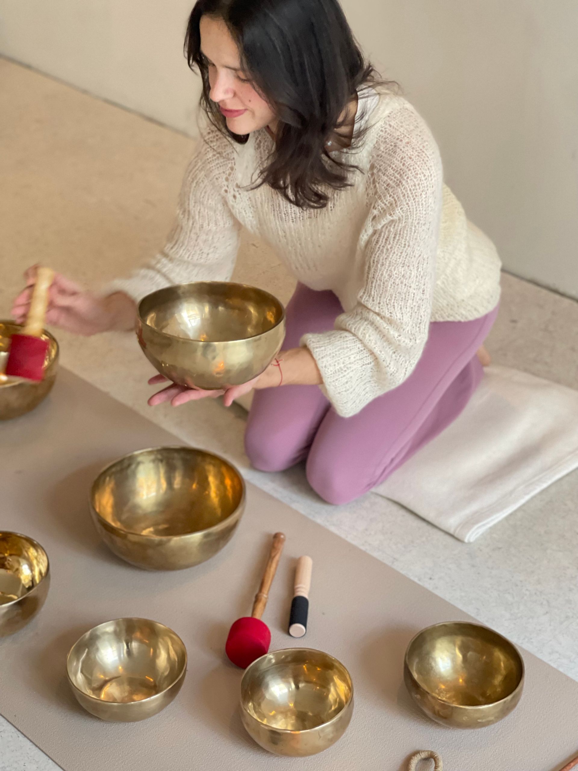 Du liegst entspannt, während die Schalen um dich herum und auf deinem Körper gespielt werden. Die Vibrationen breiten sich sanft über das Gewebe aus und können tiefe Entspannung fördern.